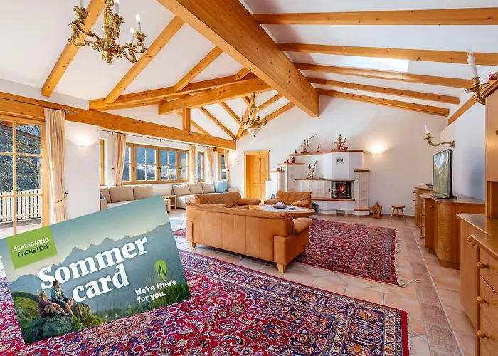 Eine voll ausgestattete Küche mit einer Mikrowelle, einer Kaffee-/Teemaschine und einem Kühlschrank gehört zur Ausstattung der Unterkunft für Selbstversorger. Diese 250 m^2 großen Apartments befindet sich in 4 Kilometer Entfernung vom Bahnhof Schladming. Dort gibt es eine Terrasse mit Blick auf die Berge.